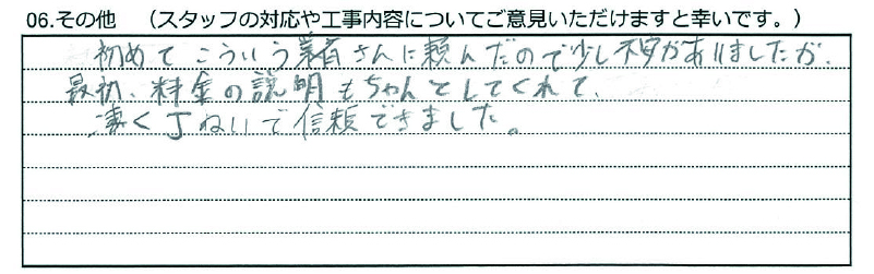 現場での確認後、作業前に正確なお見積もりをご提示します。
